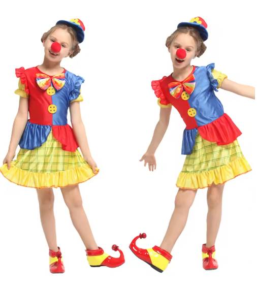 أزياء المهرج الجميلة والرائعة للفتيات لحفلات أعياد الميلاد، واللعبات المدرسية، ومواكب الأزياء، والهالوين