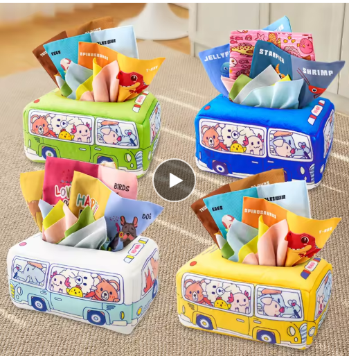 ألعاب مونتيسوري للأطفال الصغار تحاكي درج المناشف الورقية الصغيرة للأطفال مع 10 أوشحة حريرية ناعمة. YY17(0+10)