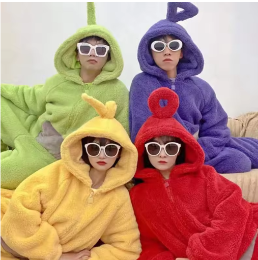 الكبار الاطفال زي المنزل 4 ألوان مضحك تينكي وينكي أنيمي تيلي الطفل أنبوبي Laa-Laa Po لينة طويلة الأكمام قطعة منامة زي