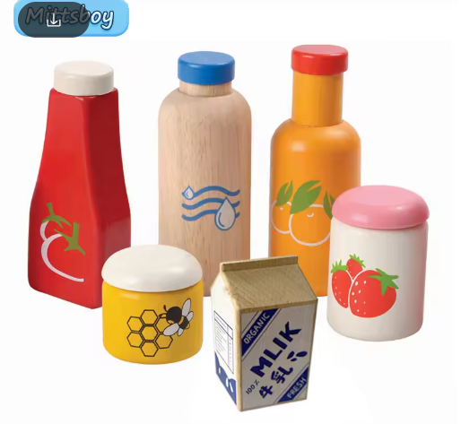 طفل مطبخ لعب خشبيّ ثلاثية الأبعاد لعبة لعب منزل زجاجة صلصة عسل نابض بالحياة الفراولة خشب متين لعبة محاكاة لعبة تعليمية هدية